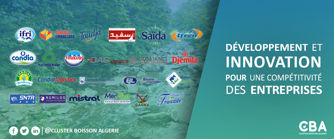 Le Groupement d'intérêt économique de la filière boissons Algérie, est le premier cluster officiellement créé en Algérie en février 2015, lors d’une Assemblée Générale qui a élu son premier Président : M. Mourad Bouattou dont les membres sont accessibles par ici.